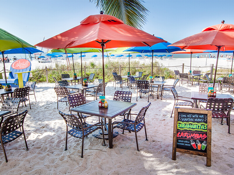 Come to Cabanas for some of the best beach side dining on Fort Myers Beach! You can sip a cold cocktail or enjoy one of our tasty entrees, salads or sandwiches all with you toes in the sand!